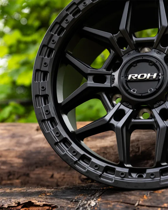 Part of the exclusive ROH Dakar Proven Wheels® range, the ROH Axe 4×4 wheel is available in a Matt Graphite finish with a Matt Black lip or a full Matt Black finish with black bolts. It comes in 17” and 18” sizes.